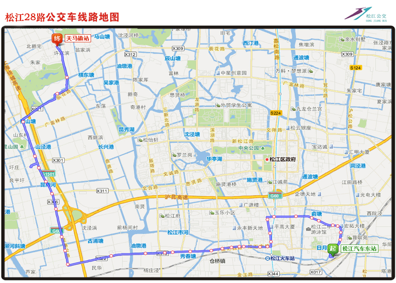| 线路走向:自松江汽车东站起经环城路、乐都路、人民北路、松汇路、松蒸公路、昆港公路、佘天昆公路至天马镇 |