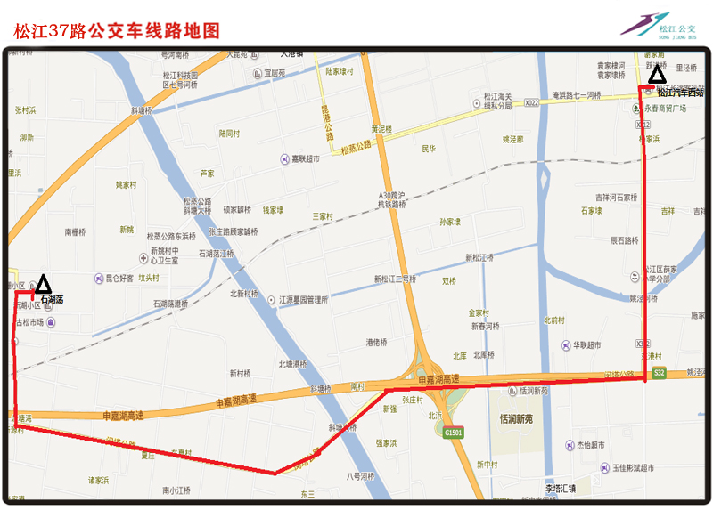 | 线路走向:自松江汽车西站起经辰塔路、塔闵公路、广庵路、东栅路至石湖荡。 |