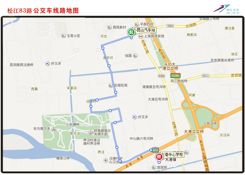 | 线路走向:自小昆山汽车站起经文翔路、中德路、思贤路、泾德路、区间西路、中德路、光华路、西环路、南环路、彭丰路至大港中心学校。 |