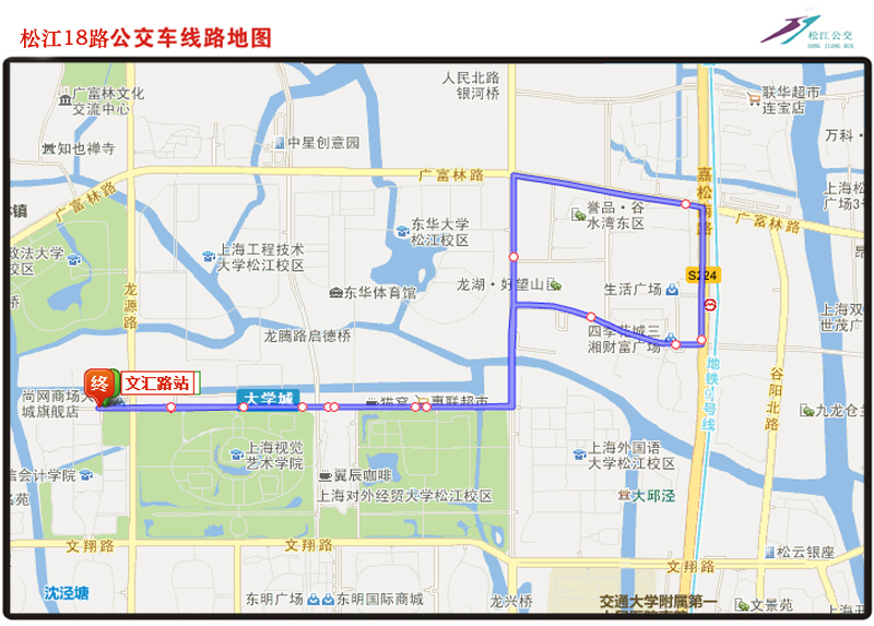 | 线路走向:由文汇路站起经文汇路、人民北路、广富林路、嘉松公路、梅家浜路、人民北路、文汇路至文汇路站。 |