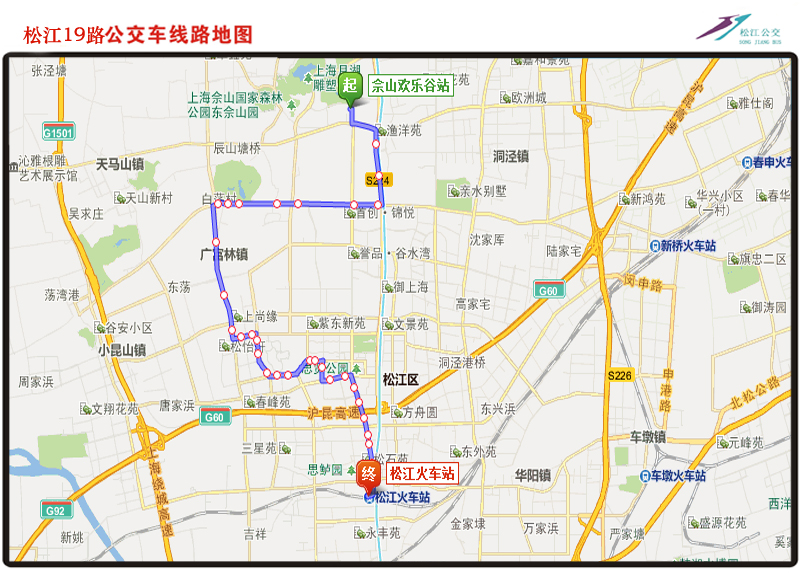 | 线路走向:自松江火车站起经人民南路、人民北路、思贤路、江学路、文诚路、三新北路、新松江路、辰塔路、辰花公路、嘉松公路、沈砖公路至佘山欢乐谷。 |