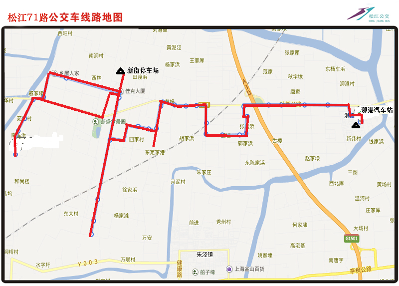 | 线路走向:自泖港汽车站起经新乐路、中兴路、新宾路、中天路、叶新公路、腰泾公路、新三路、中二路、腰南路、中四公路、叶新公路、朱定公路、齐心路、东厍公路、中环路、五朱公路、叶新支路、茹塘路至长浜村。 |