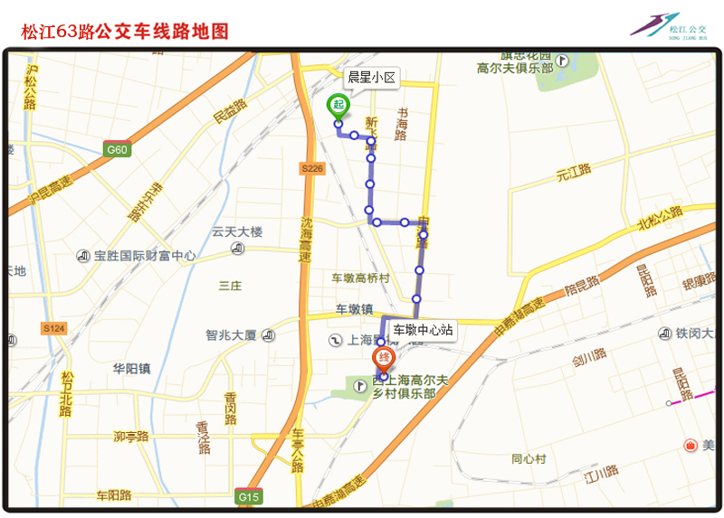 | 线路走向:(上行)自晨星小区起经茜浦路、书林路、新飞路、松闵路、申港路、北松公路、车峰路至车墩中心站。(下行)自车墩中心站起经车峰路、北松公路、申港路、松闵路、新飞路、南环路、茜浦路至晨星小区。 |