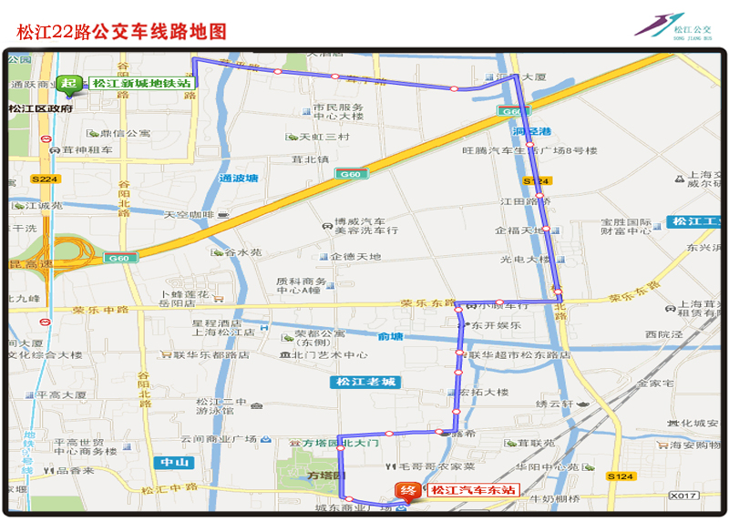 | 线路走向:自松江新城地铁站起经通跃路、南青路、通波路、茸平路、松卫北路、荣乐路、松东路、中山东路、方塔南路、松汇东路至松江汽车东站。 |