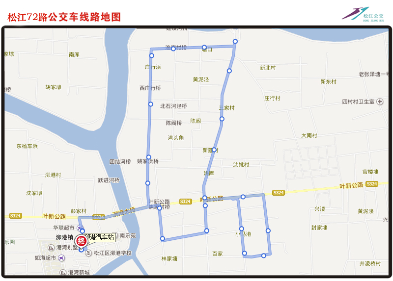| 线路走向:自泖港汽车站起经新乐路、中兴路、叶新公路、涵养林公路、塘口公路、松金公路、叶新公路、焦家东路、黄家埭路、百家公路、长浜路、松金公路、小马港路、泖新南路、叶新公路、中兴路、新乐路至泖港汽车站。 |