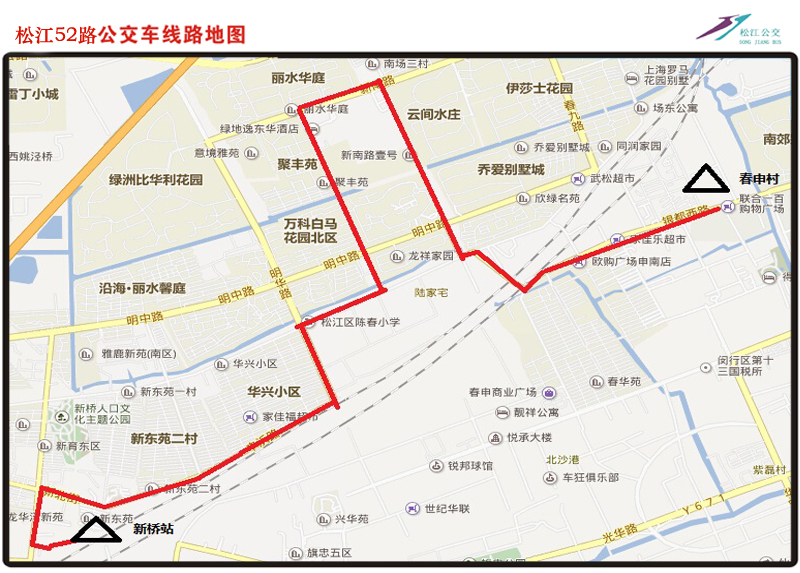 | 线路走向:自新桥站起经新育路、新北街、申浜路、月台路、陈春路、明兴路、新南路、场西路、陈春路、申光路、银都西路至春申村。 |
