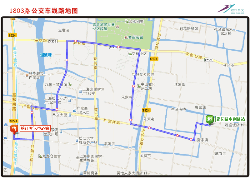 | 线路走向:上行:自松江客运中心起经嘉松公路、广富林路、光星路、辰花公路、茸惠路、广富林路、中辰路、施园路至施园路中创路。下行:自施园路中创路起施园路、中辰路、广富林路、茸惠路、辰花公路、光星路、广富林路、谷阳北路、梅家浜路至松江客运中心。 |