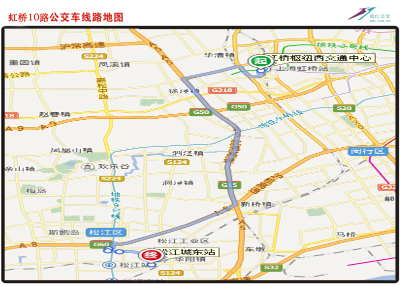 线路走向:自松江汽车东站起经环城路、乐都路、人民北路、荣乐路、沪昆高速、沈海高速、崧泽高架、嘉闵高架、建虹高架至虹桥西交通中心。