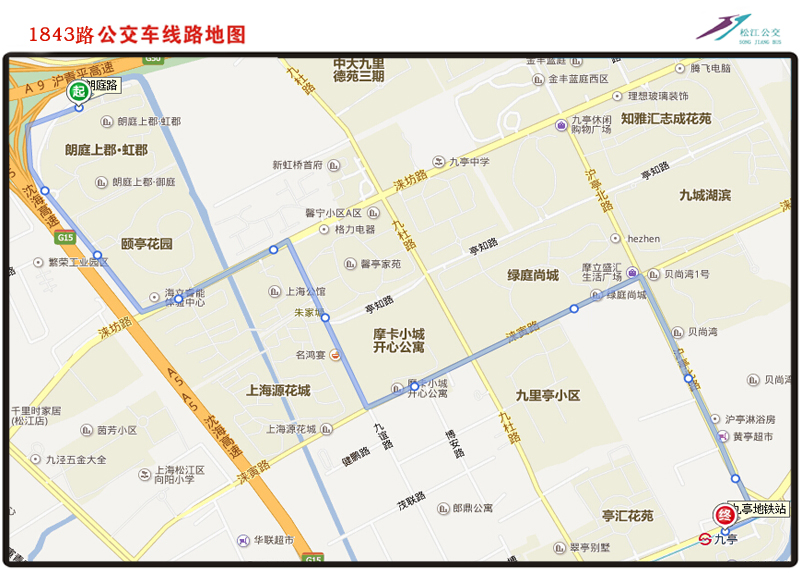 | 线路走向:自九亭地铁站起经沪亭北路、涞寅路、九谊路、涞坊路、朗亭路至朗亭路。 |