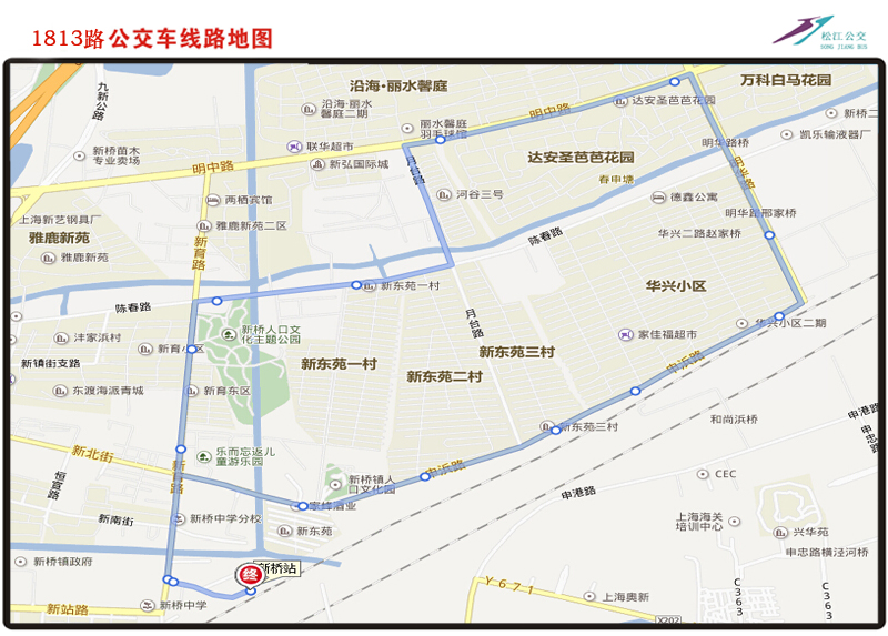 | 线路走向:自新桥站起经新育路、陈春路、月台路、明中路、明华路、申浜路、新育路至新桥站 |
