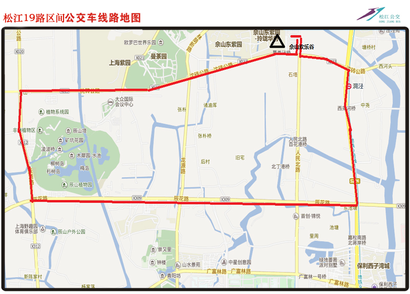 | 线路走向:自佘山欢乐谷起经沈砖公路、嘉松公路、辰花公路、辰塔路、沈砖公路至佘山欢乐谷。 |