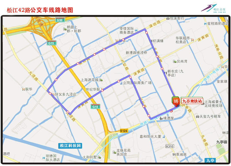 | 线路走向:由九亭地铁站起经沪松公路、九杜路、涞寅路、九泾路、涞坊路、沪亭北路至九亭地铁站 |