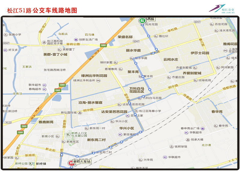 | 线路走向:自新桥火车站起经新育路、新北街、申浜路、明华路、明中路、明兴路、新南路、场西路至场西路。 |