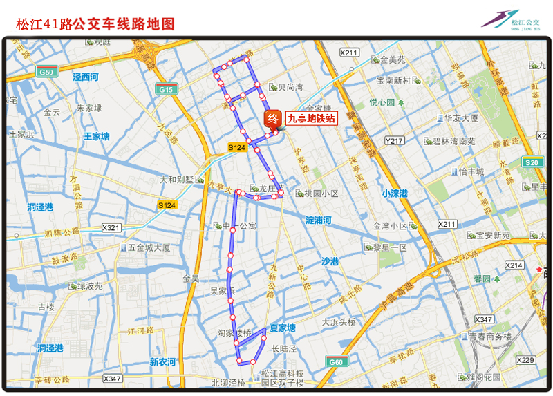 | 线路走向:自九亭地铁站起经沪松公路、九杜路、涞坊路、沪亭北路、沪松公路、九亭公路、九亭大街、盛龙路、叶亭路、九新公路、姚北路、盛龙路、九亭大街、九亭公路、沪松公路、沪亭北路、涞坊路、九杜路、涞寅路、沪亭北路至九亭地铁站。 |