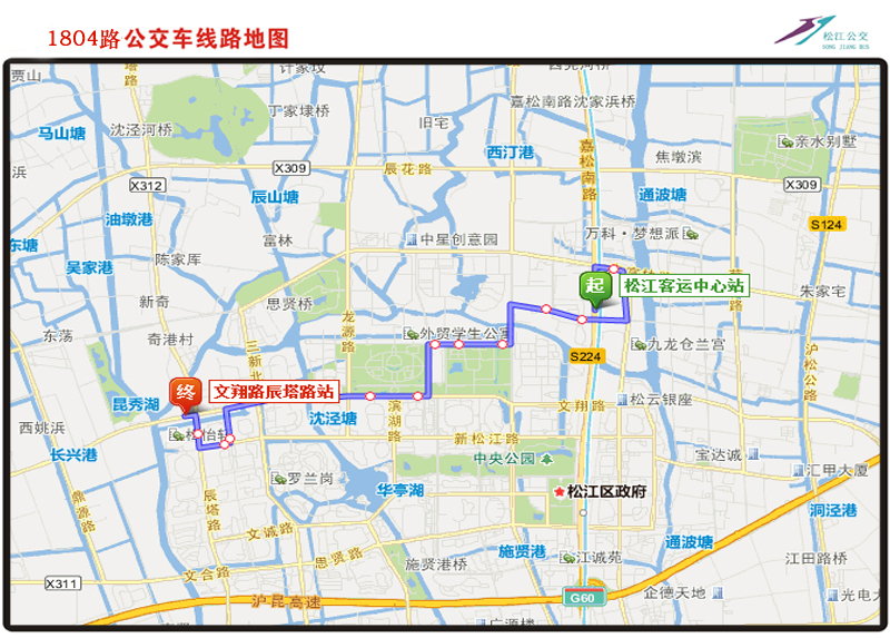 | 线路走向:(上行)自松江客运中心起经嘉松公路、广富林路、谷阳北路、梅家浜路、人民北路、文汇路、龙腾路、文翔路、文涵路、新松江路、辰塔路、文翔路至文翔路站。(下行)自文翔路站起经文翔路、龙腾路、文汇路、人民北路、梅家浜路、嘉松公路至松江客运中心。 |
