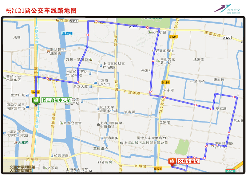 | 线路走向:(上行)自松江客运中心起经嘉松公路、广富林路、光星路、辰花公路、茸惠路、广富林路、中辰路、施园路、中创路、明南路、中辰路、缤纷路、中凯路、文翔路至文翔东路。(下行)自文翔东路起经文翔路、中凯路、缤纷路、中辰路、明南路、中创路、施园路、中辰路、广富林路、茸惠路、辰花公路、光星路、广富林路、谷阳北路、梅家浜路至松江客运中心。 |