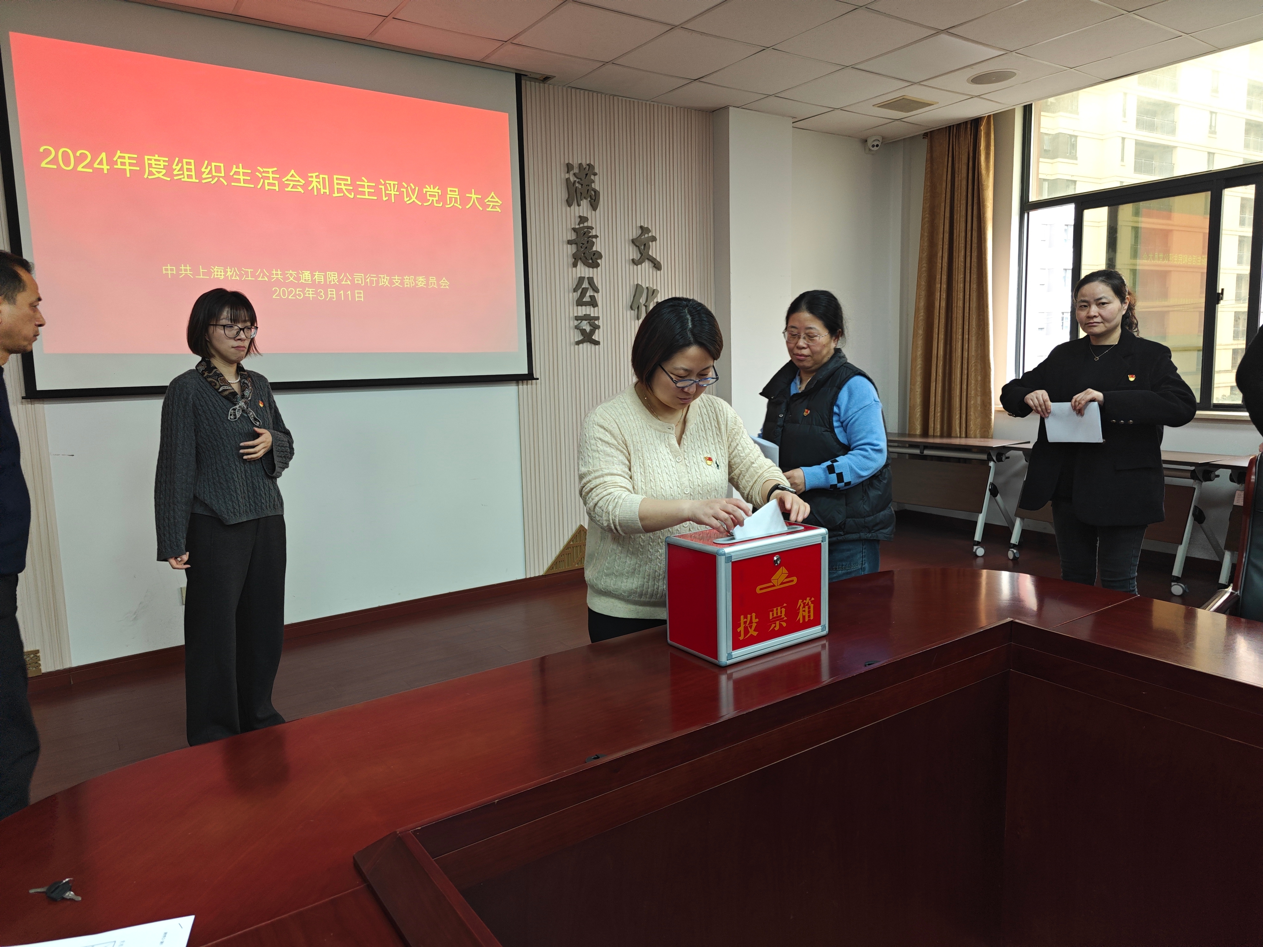 批评和自我批评环节结束后,党员以无记名投票方式进行了民主测评,大家根据日常表现情况,实事求是地填写评议表。整个评议过程公正客观,充分发挥民主评议对党员的激励和监督作用。 此次组织生活会,严肃了党内的政治生活,全体党员将以此为契机,将查摆出的问题列为清单,逐一整改。松江公交公司党委也将着力加强督促和指导,以更高标准推动支部建设提质增效,为进一步全面深化改革、推进中国式现代化提供坚强纪律保证。   杨静婷