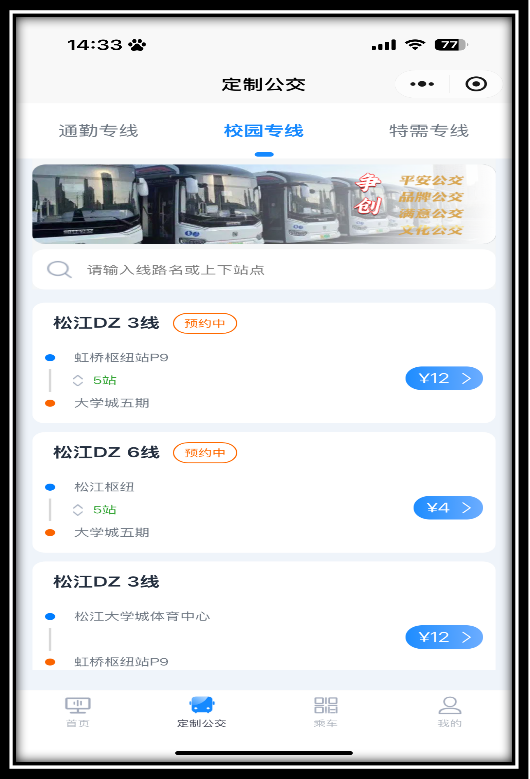 别急,松江DZ3线、松江DZ6线定制班线可预约啦!松江公交公司继续为大学城高校校区学生回校提供便捷、暖心的定制化出行服务。
