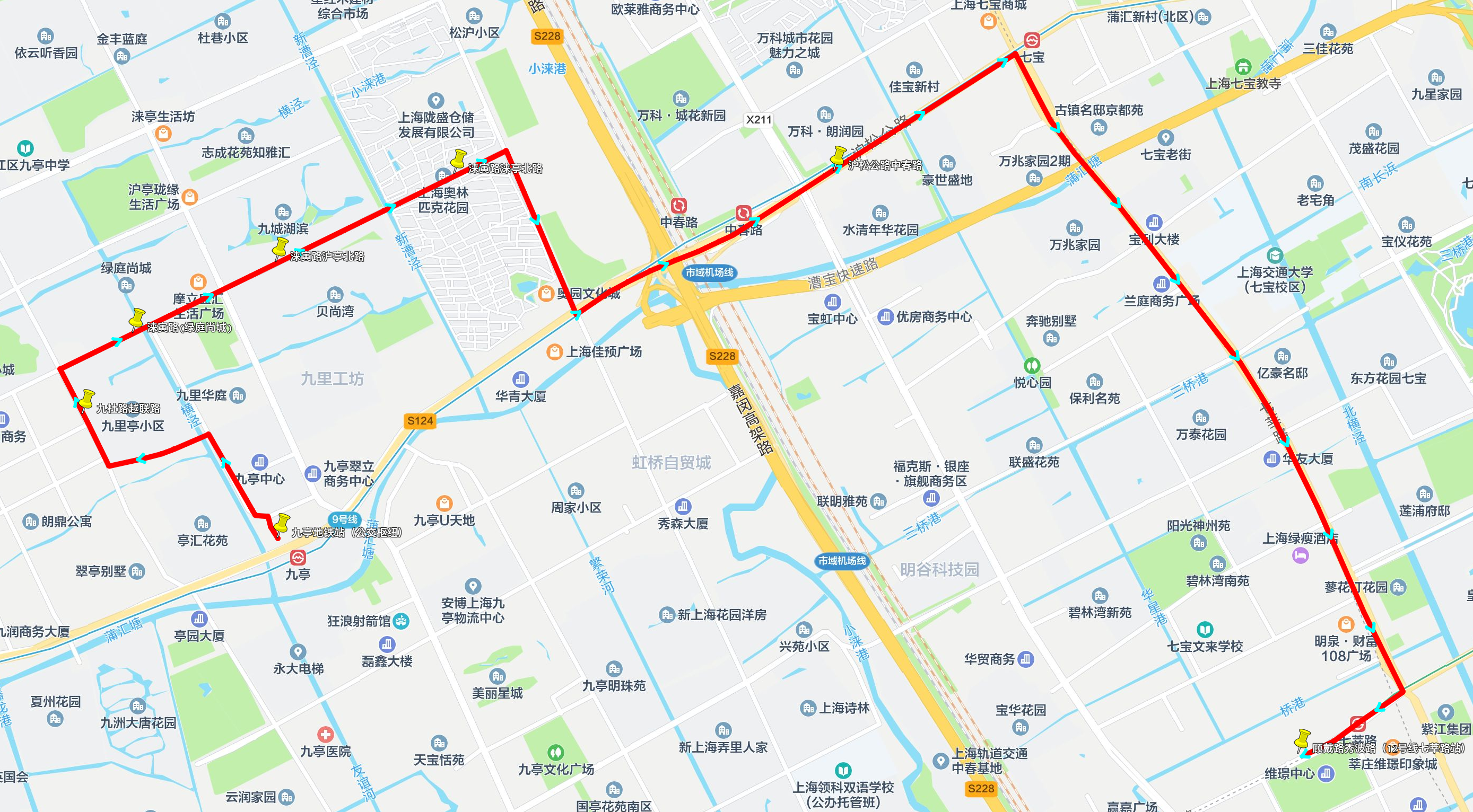 ✔️ 首末站:9号线九亭地铁站(公交枢纽)↔12号线七莘路站