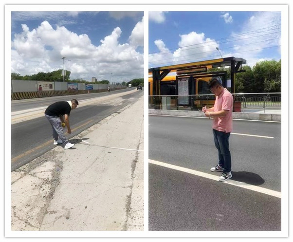 在公交线网调整前期,公司营运部工作人员毛晓龙和陈旭在新辟线路及调整线路的各个路段和站点进行实地勘察。连日来的高温酷暑,使整个城市犹如大蒸笼般闷热,他们在室外高温下持续工作着,汗水浸湿了他们的衣服,然而大汗淋漓的他们顾不得擦拭,认真仔细地记好站点标记、发现问题及时记录、测量站距,设置站点的位置。同时,为了开展2019年“四好农村路”,迎接上级部门对建设工作的督查考评,毛晓龙和陈旭实地到浦南地区的公交线路及站点、候车设施进行现场勘察。