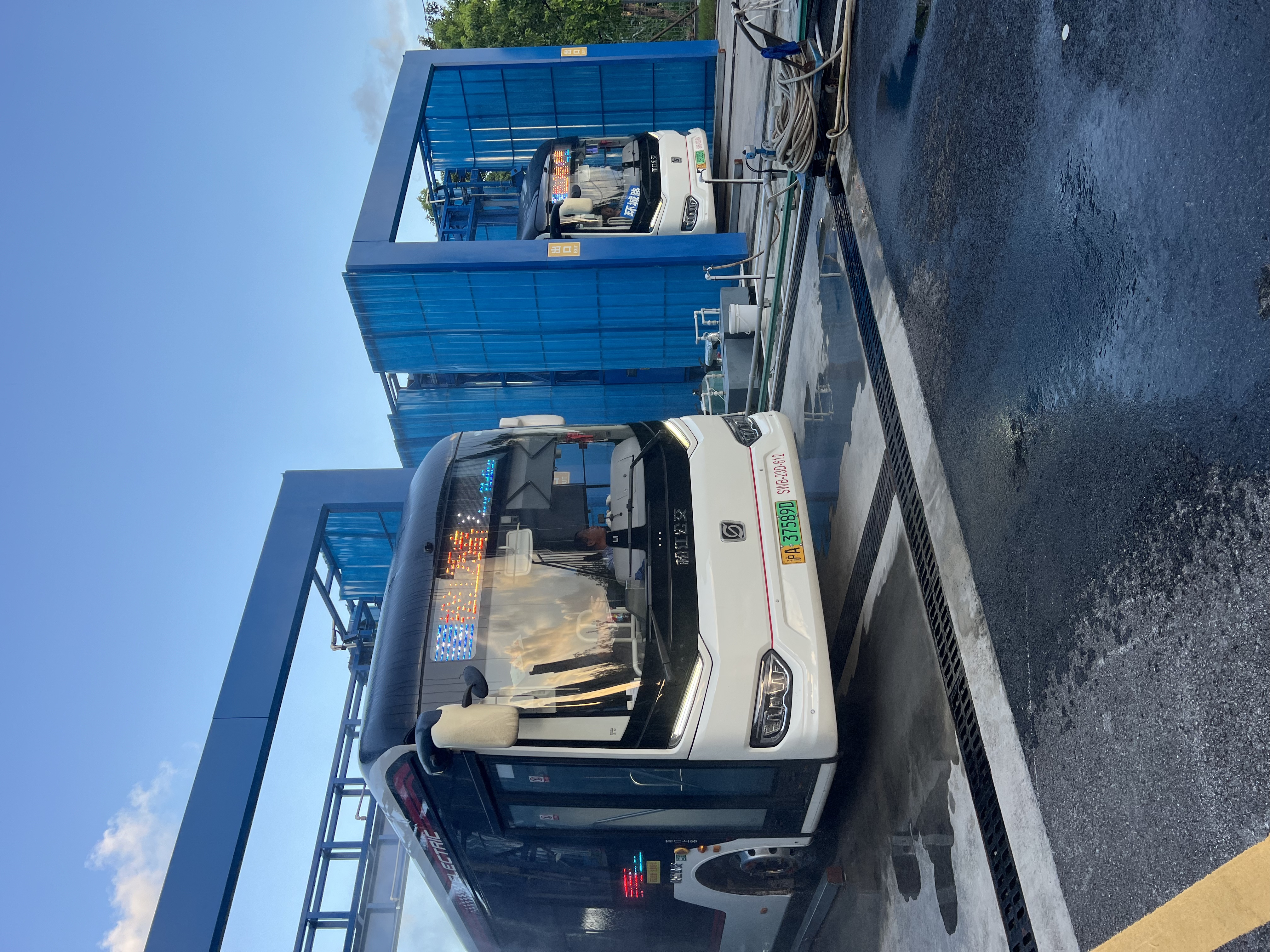 2025年7月22日晚,二分公司松江25路、松江34路、1849路共13辆车陆续驶入松江南永丰站。
