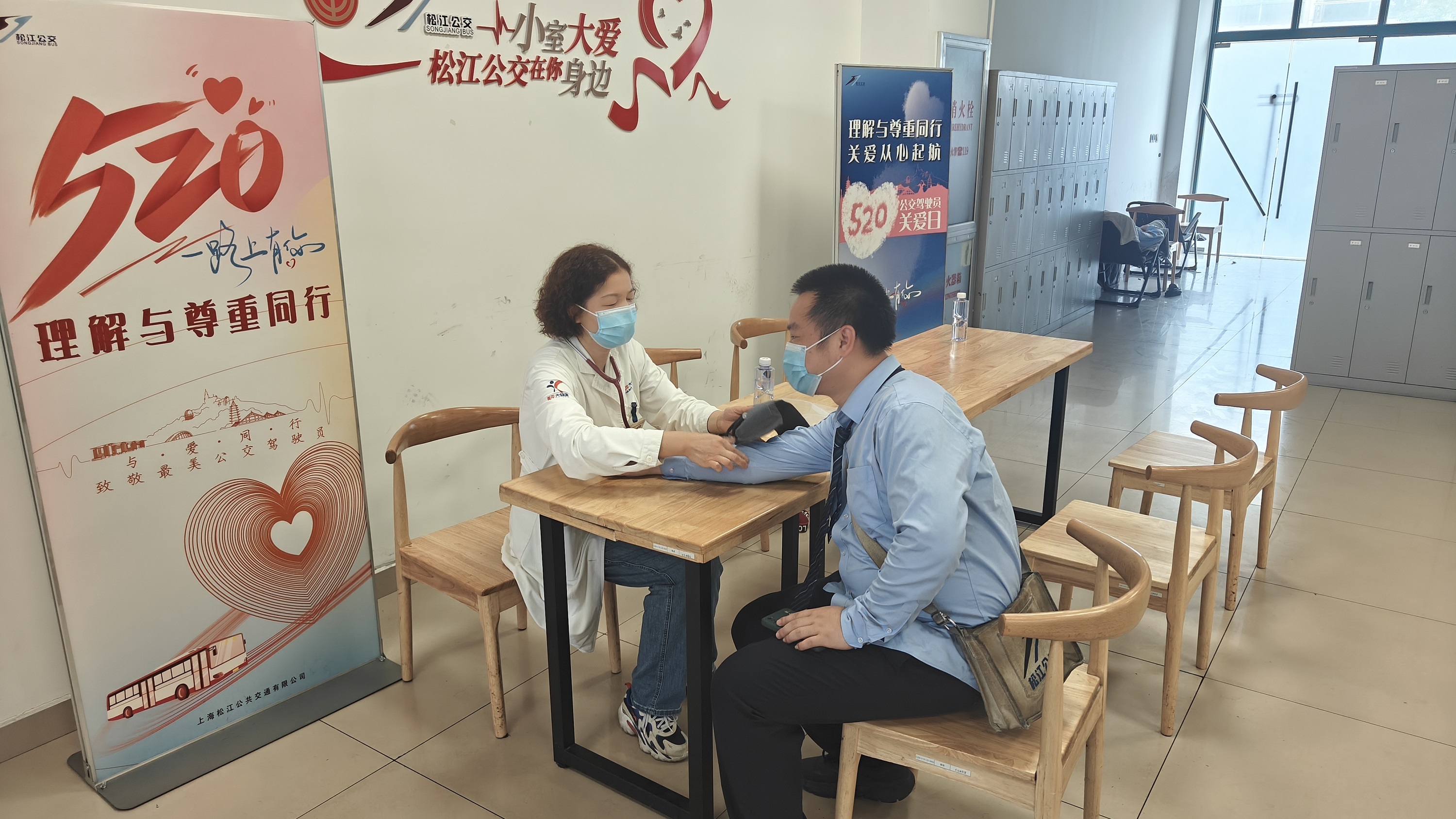 当天下午,公司组织了一场义诊活动,分别在汽车东站、汽车西站和佘山地铁站三个点为驾驶员提供测量血压、现场面诊、健康咨询等相关服务。